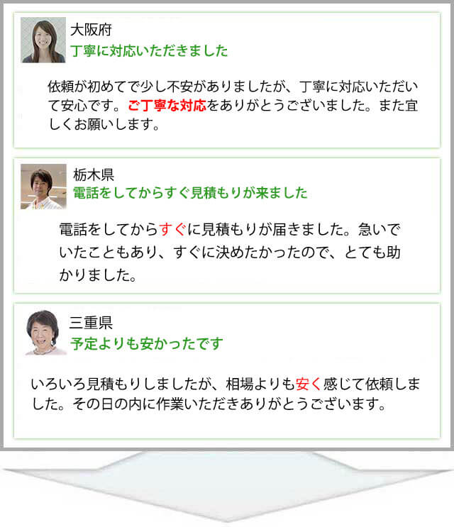 おかげさまで多くのお客様にご利用いただいております。200件以上の出動実績があり経験豊富な加盟スタッフがお客様のお悩みを解決いたします。